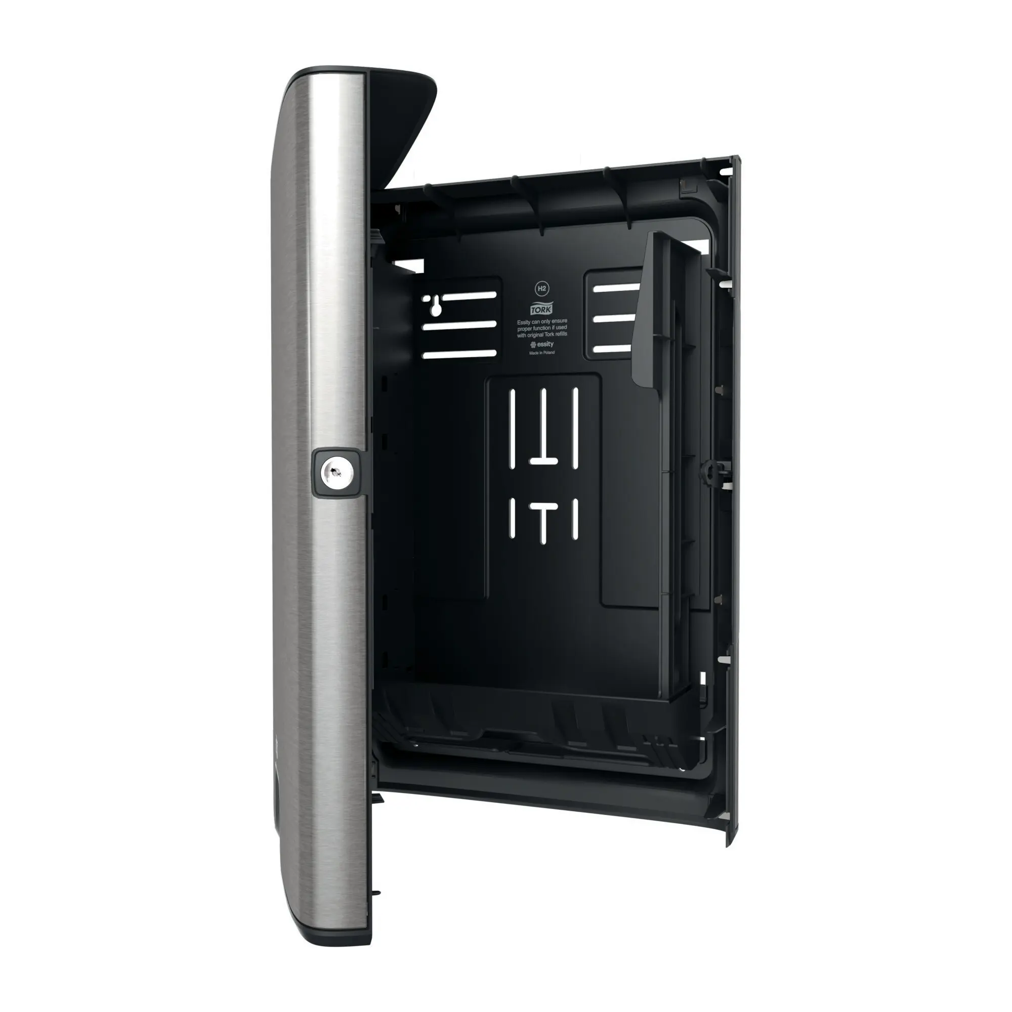 En modern design med släta ytor och rena linjer som smälter in i ditt toalettutrymme. Skapar ett bra intryck och förstärker känslan av hög kvalitet i din verksamhet. En elegant dispenser med ett hölje i lätt borstat rostfritt stål med skydd mot fingeravtryck och som håller den snygg och ren.